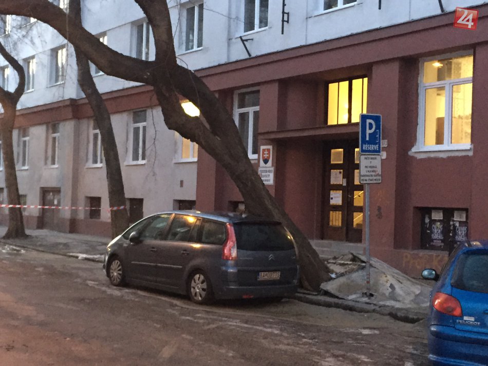 Galéria k článku Vyvrátený strom takmer spadol na cestu. Zabránilo mu v tom zaparkované auto
