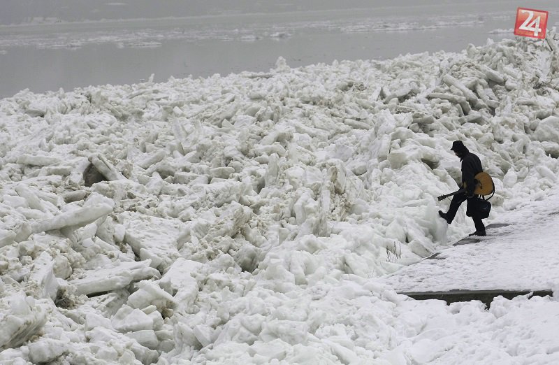 Galéria k článku Zamrznutý Dunaj. Rieku plnú ľadových krýh museli letecky bombardovať