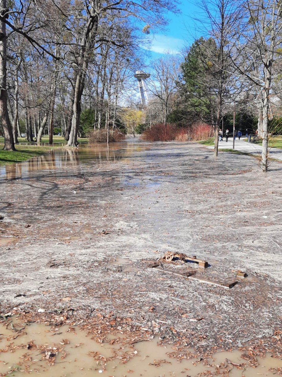 Galéria k článku ZATOPENÝ Sad Janka Kráľa: Poškodený vodovod, ktorý vytvoril v parku JAZERO, opravili