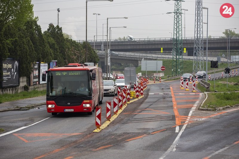 Galéria Zmenené dopravné značenie na zjazde z Prístavného mosta na Bajkalskú ulicu.