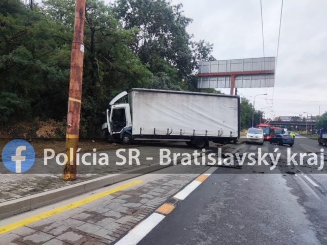 Galéria k článku ZRÁŽKA nákladiaku s dvomi autami na frekventovanej ulici: TRAJA ľudia sa zranili! FOTO