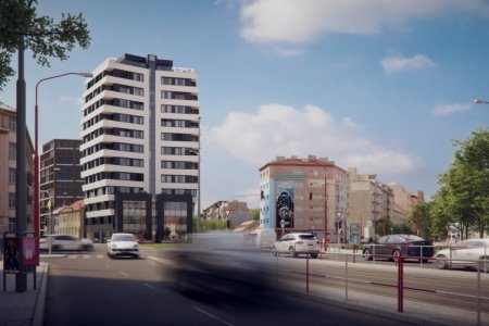 Na Račianskom mýte by mal už koncom budúceho roka dominovať trinásťposchodový vežiak Proxenta Residence. Kto túži bývať priamo nad rušnou križovatkou, môže si vybrať z ponuky 64 dvojizbových bytov a apartmánov s rozlohou od 46,8 do 62 štvorcových metrov. Väčšina z nich bude mať balkón alebo lodžiu.