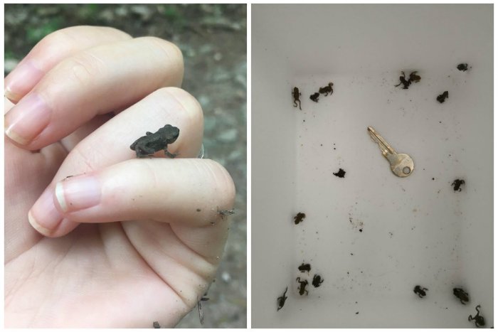 Mladé žabky sú veľmi krehké a drobné. Ak chcete byť nápomocní, nechytajte ich do rúk. Mohli by ste im ublížiť.
