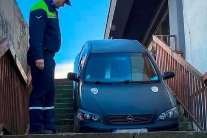 Je všeobecne známe, že s parkovaním sú v Petržalke veľké problémy. Jeden z vodičov ich vyriešil po svojom. Ako sa auto dostalo na schody terasy paneláka, si môžeme len domýšľať.
