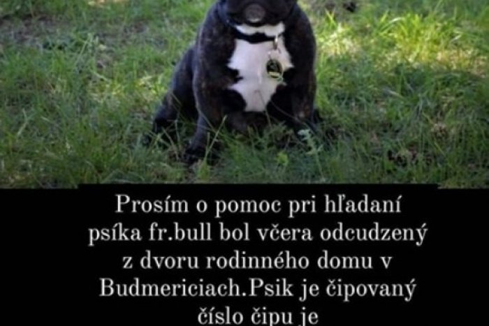 Pani z Budmeríc, teda obce, ktorá sa nachádza v okrese Pezinok prišla o domáceho miláčika. „Ten jej bol odcudzený z dvora rodinného domu v obci Budmerice. Oznámenie majiteľky o krádeži sme prijali na príslušnom útvare Okresného riaditeľstva PZ v Pezinku dňa 15.03.2021. Dúfame, že pátranie po francúzskom buldočkovi Félixovi bude mať úspešný záver,“ dopísali muži zákona a zverejnili aj fotky psíka.