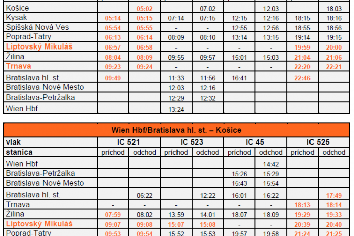 - úprava polôh IC 520 a 525 s vytvorením prípojov v Košiciach a pridanie zastavení niektorých IC vlakov v Trnave a Liptovskom Mikuláši,