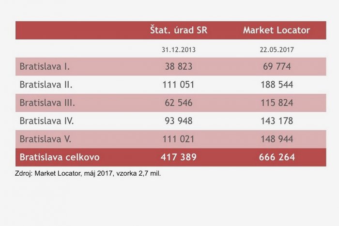 V Bratislave nocuje o takmer 250-tisíc ľudí viac ako býva ľudí v hlavnom meste podľa údajov Štatistického úradu SR z roku 2013. Ukázali to reálne dáta Big data a populačnej analytiky Market Locatora z mobilných telefónov, ktoré „nocujú“ v hlavnom meste.